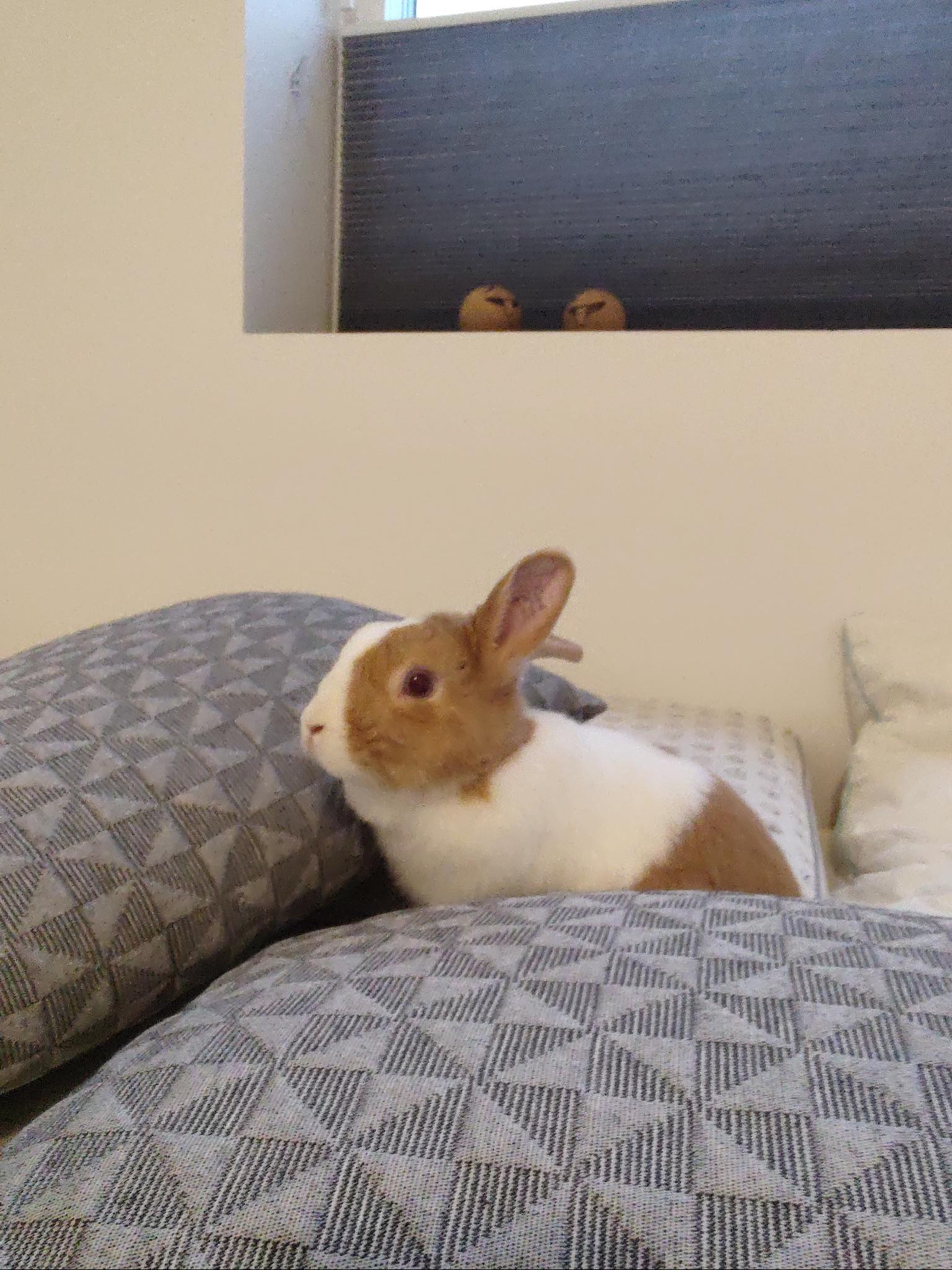 Nellie er meget social og elsker at være dér, hvor det hele sker. Hun følger sin plejer rundt i huset, og hvis plejer går i soveværelset og lukker døren efter sig, så sidder Nellie ofte udenfor og venter – altid klar til at komme ind og være med 😍 Selvom der ofte er fart over feltet, så elsker Nellie også at putte sig på tæppet under spisebordet i køkkenalrummet 🐇💤